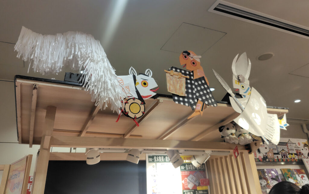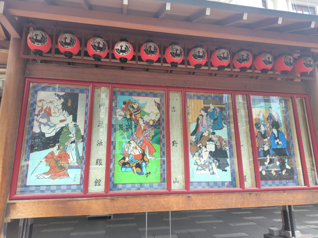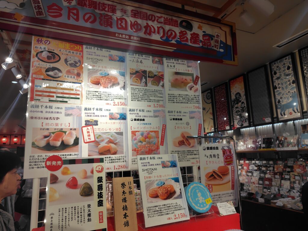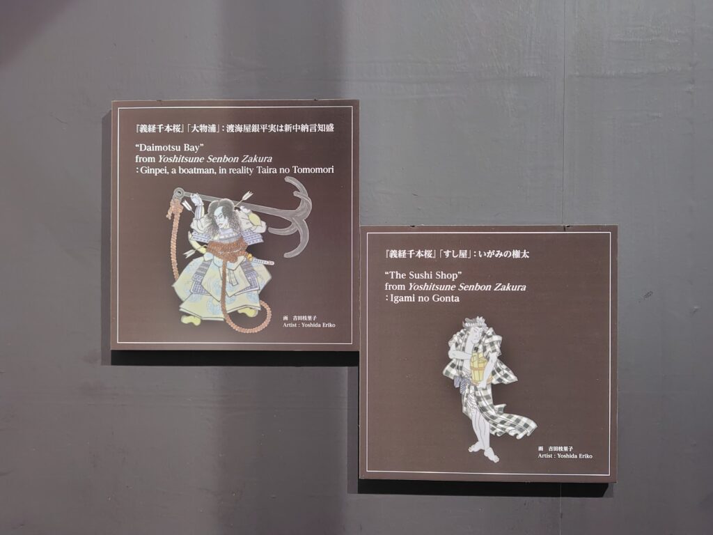 目を上げると義経千本桜にちなんだディスプレイ