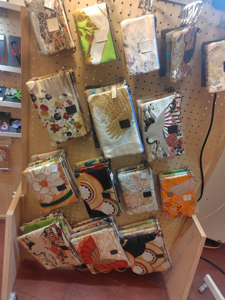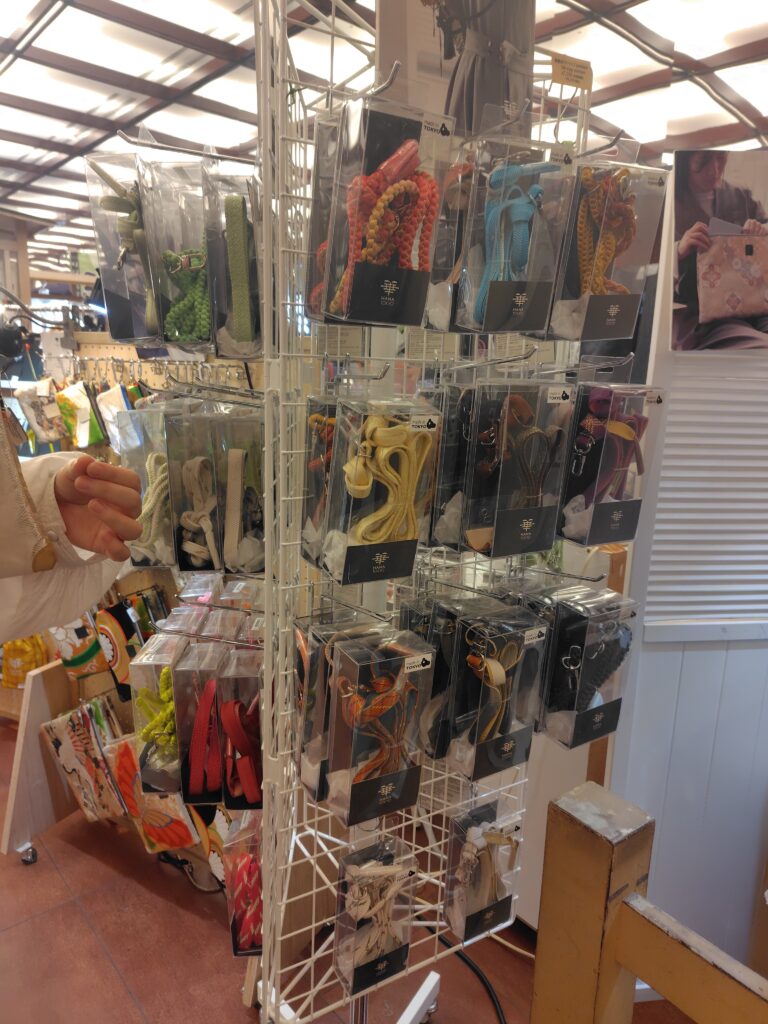 帯締めでスマホストラップ 帯でポーチやクラッチバックを作られています