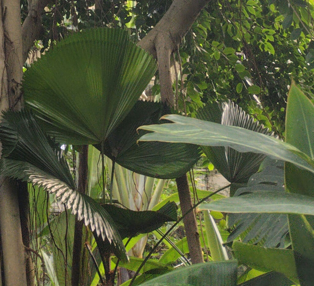 マルハウチワヤシ 葉身が分裂しない大きな扇形の葉