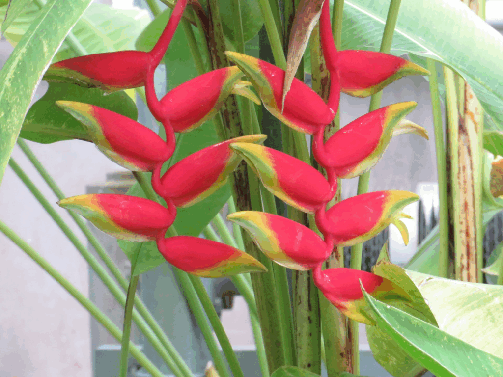 ハチドリが花粉を運んで受粉の助けをするヘルコニアは枯れています