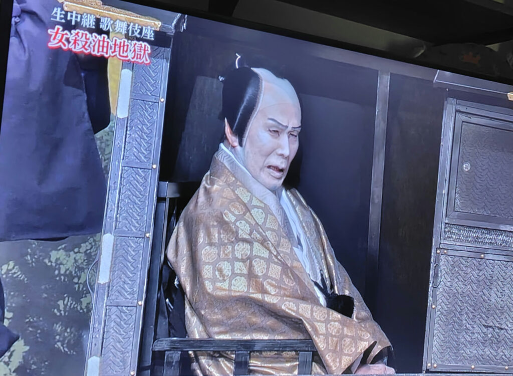 流石!日本髪も五本車鬢 最後 花道での幸四郎さんとのかけあいが楽しい