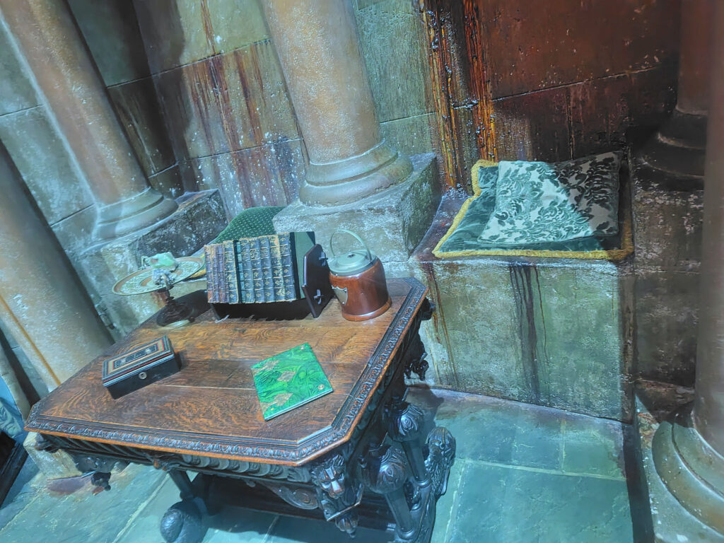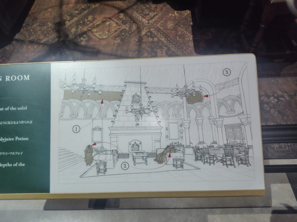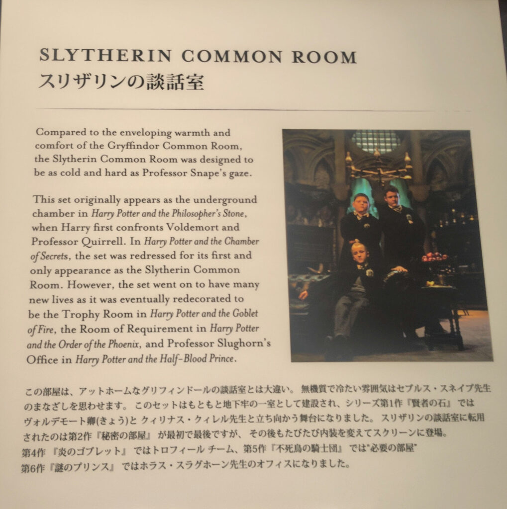スネイプ先生が寮監でドラコが在籍したスリザリン寮の談話室