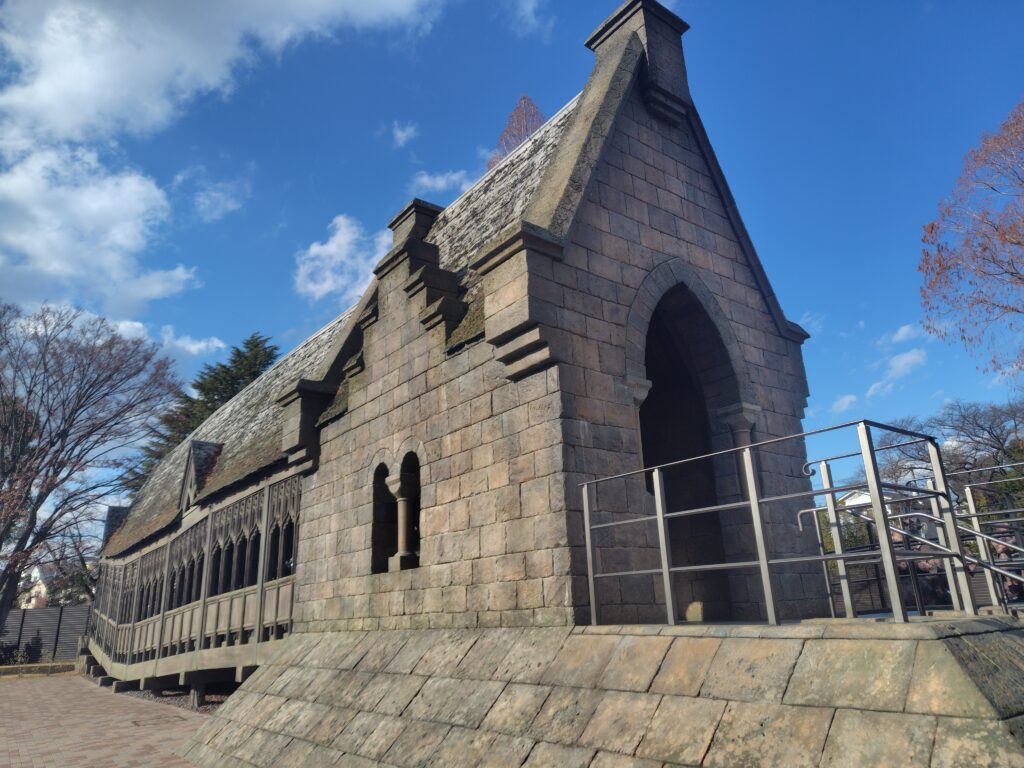 足元入口から続く床は本編セットと同じヨーロッパの伝統的な石材