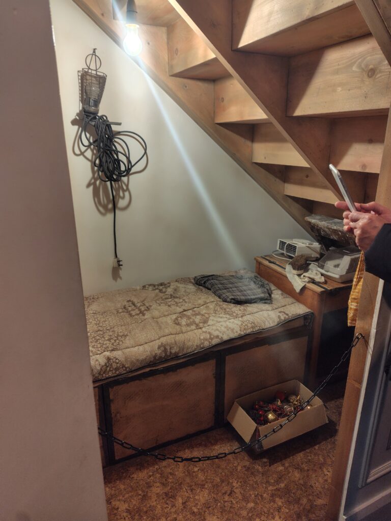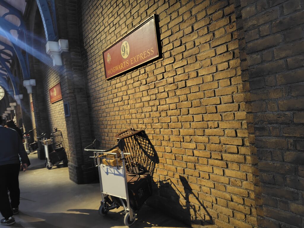 ここはホグワーツ魔法魔術学校へとつづくホグズミード駅をイメージしたデザインで