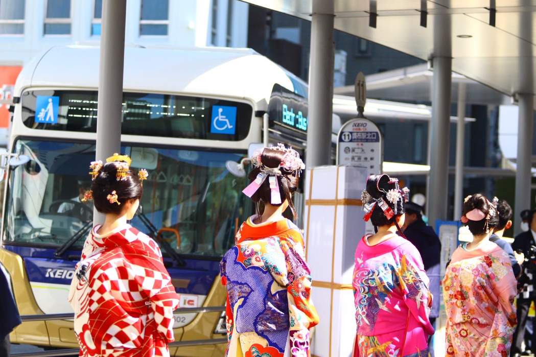 🚌調布駅に戻りました ↓花苗さんと華さん↓