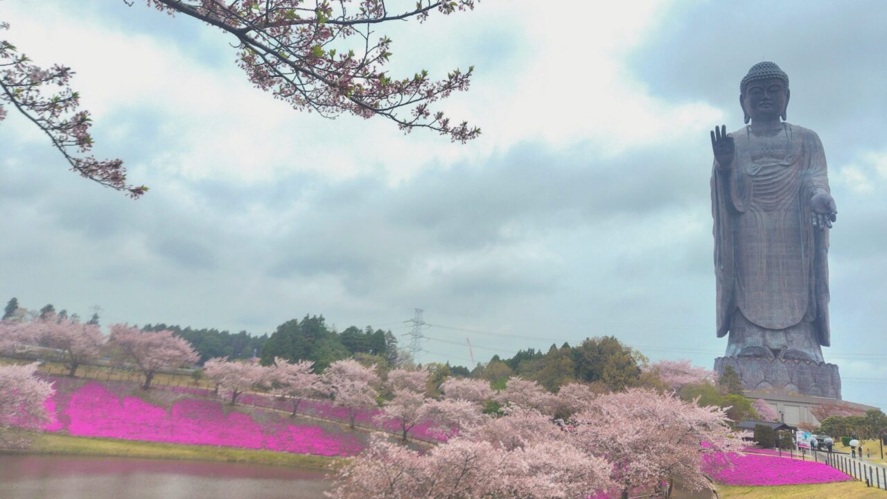 北関東の有名スポット牛久大仏 浄土庭園に到着!