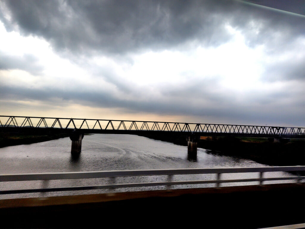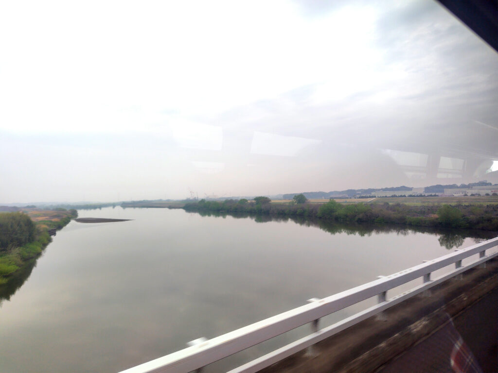 つくばエキスプレスの橋梁を見ながら利根川橋を渡ります
