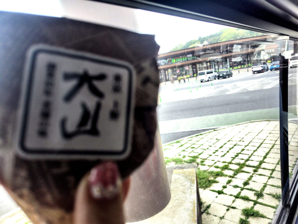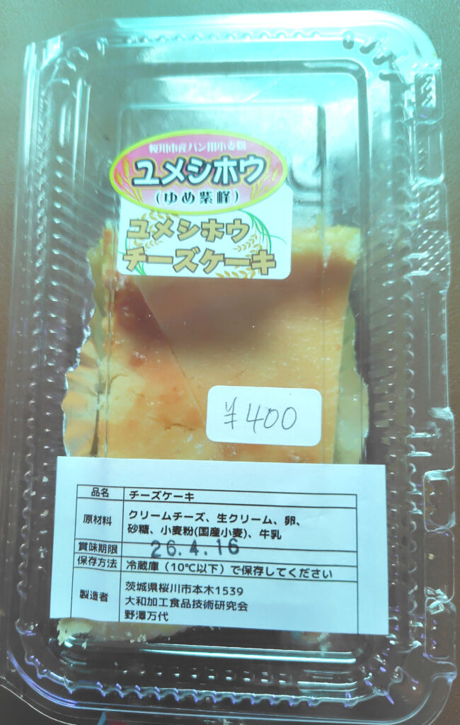 神社の出店でチーズケーキを購入