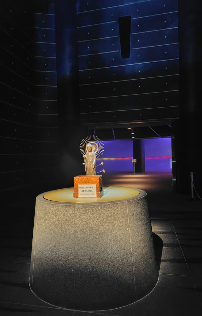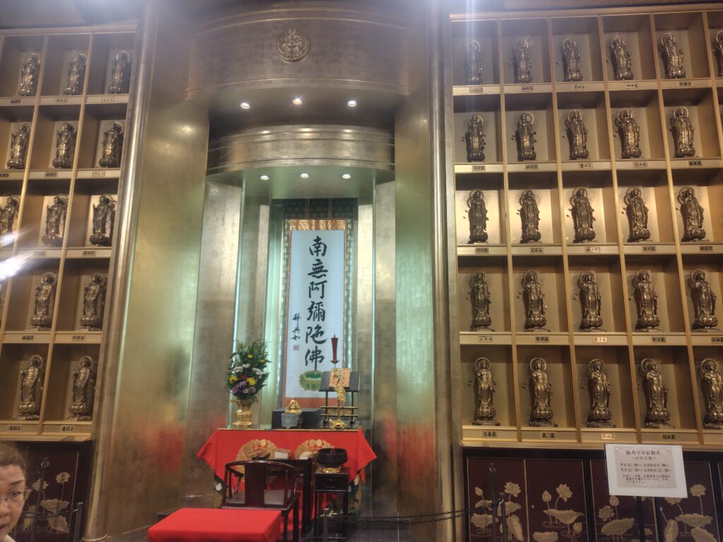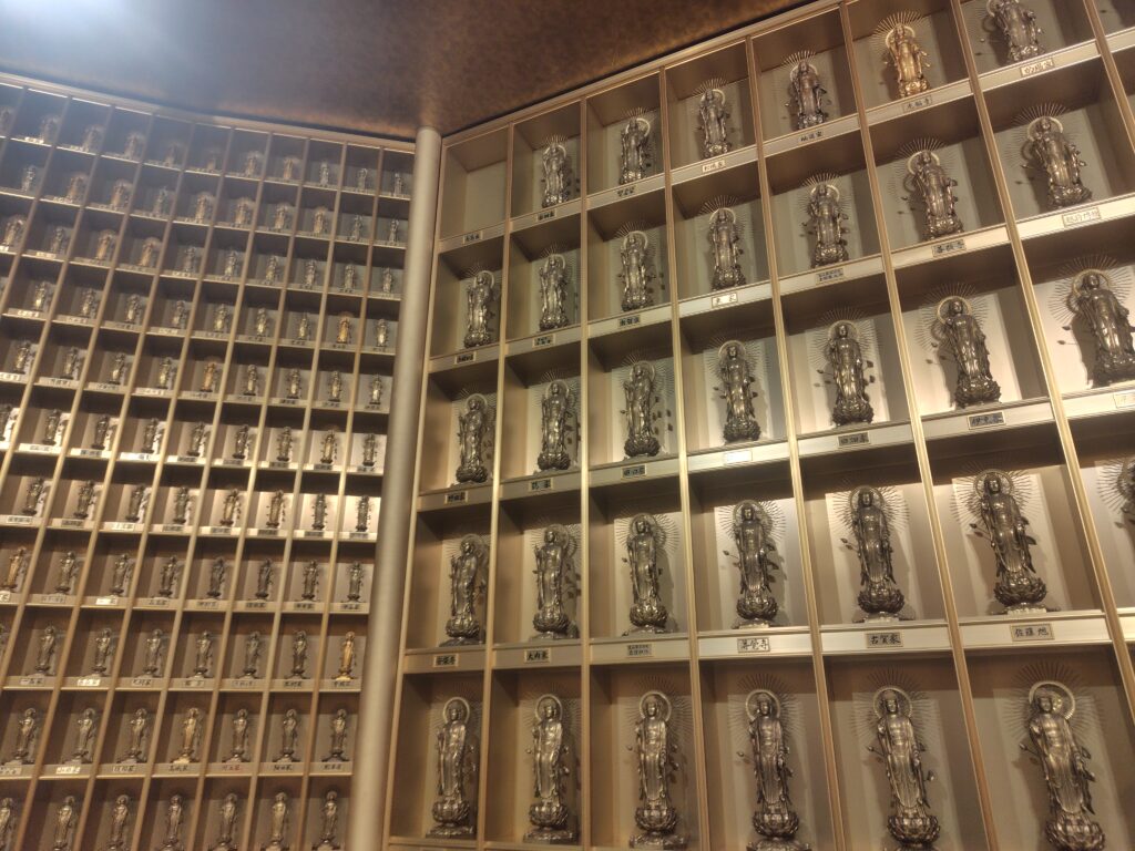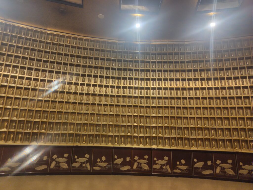 約3,300体の金色の仏像が安置された収骨棚