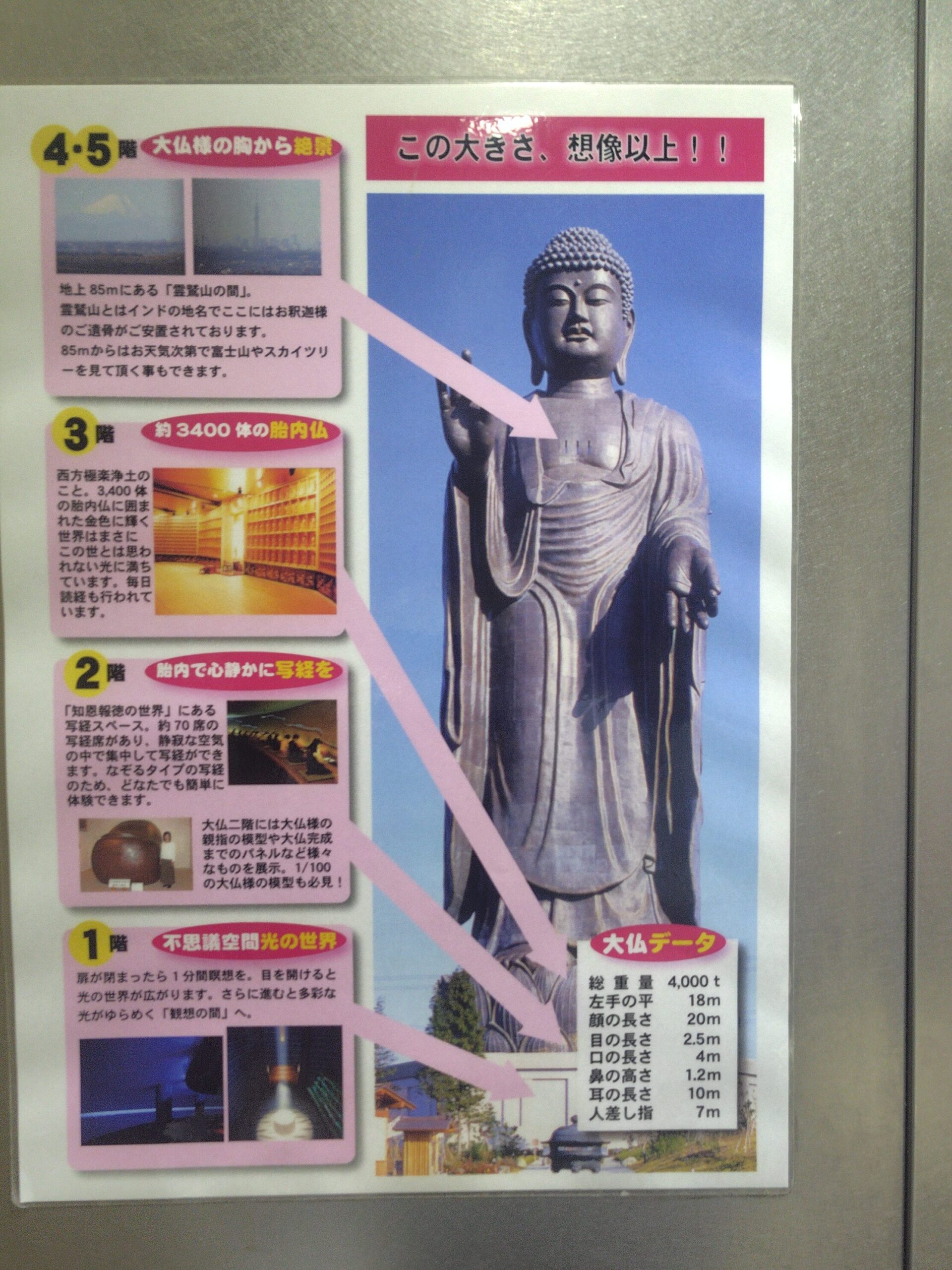 牛久大仏の胎内は5階建で像高は100m / 全長は120m