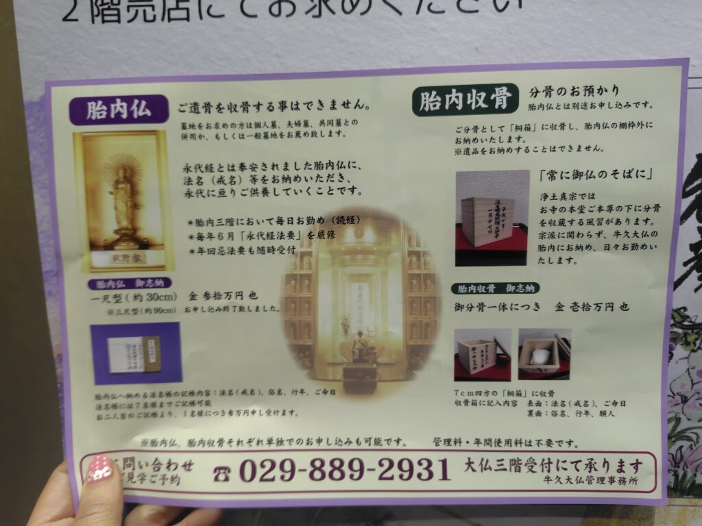大仏様の胎内にご遺骨を安置し永代にわたって供養する方法です