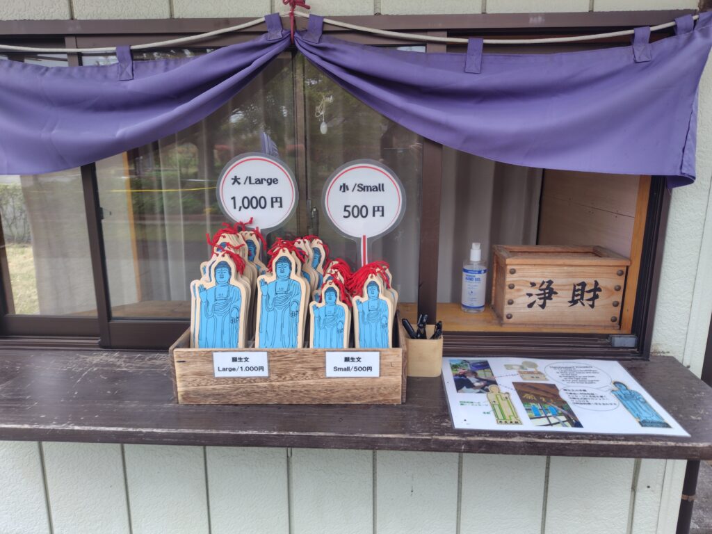 阿弥陀如来への願いや感謝の気持ちなどを書き願生文掛けに↑