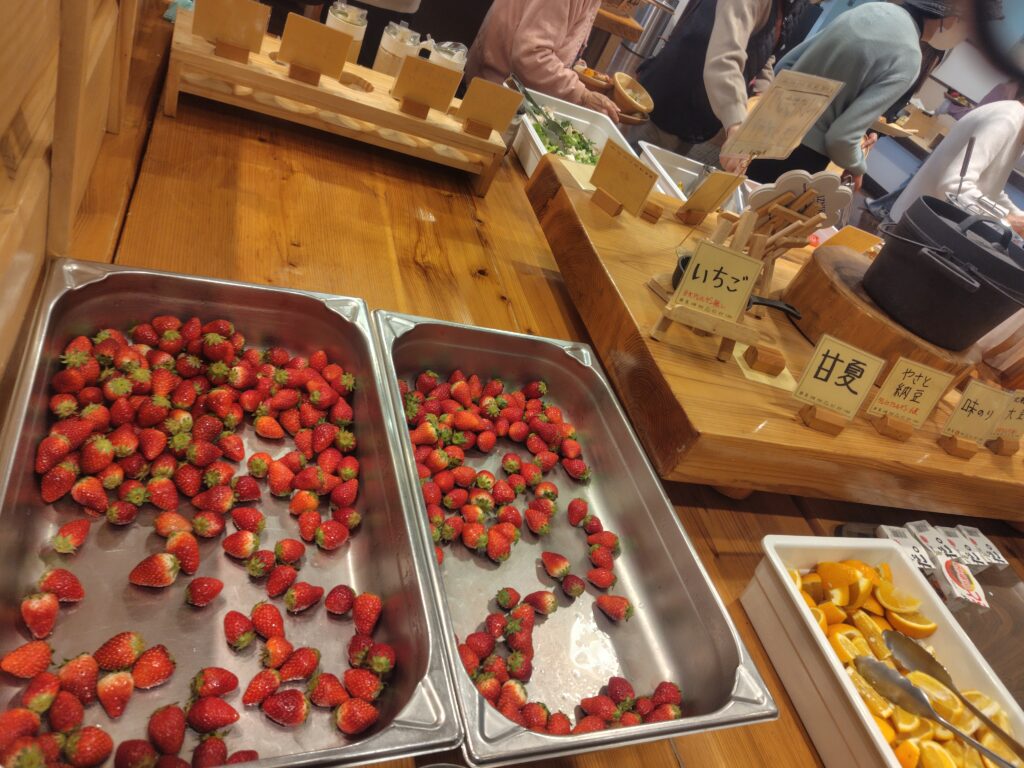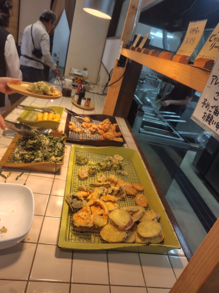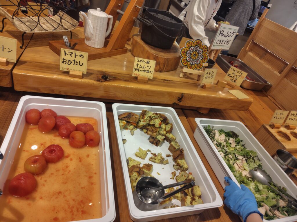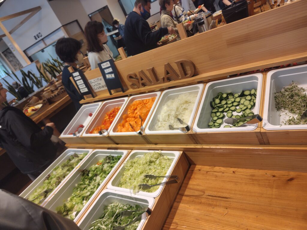 昼食は直売所から届く季節の野菜を中心にビュッフェスタイル