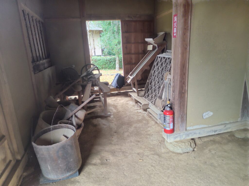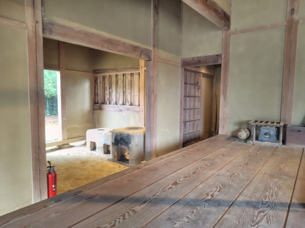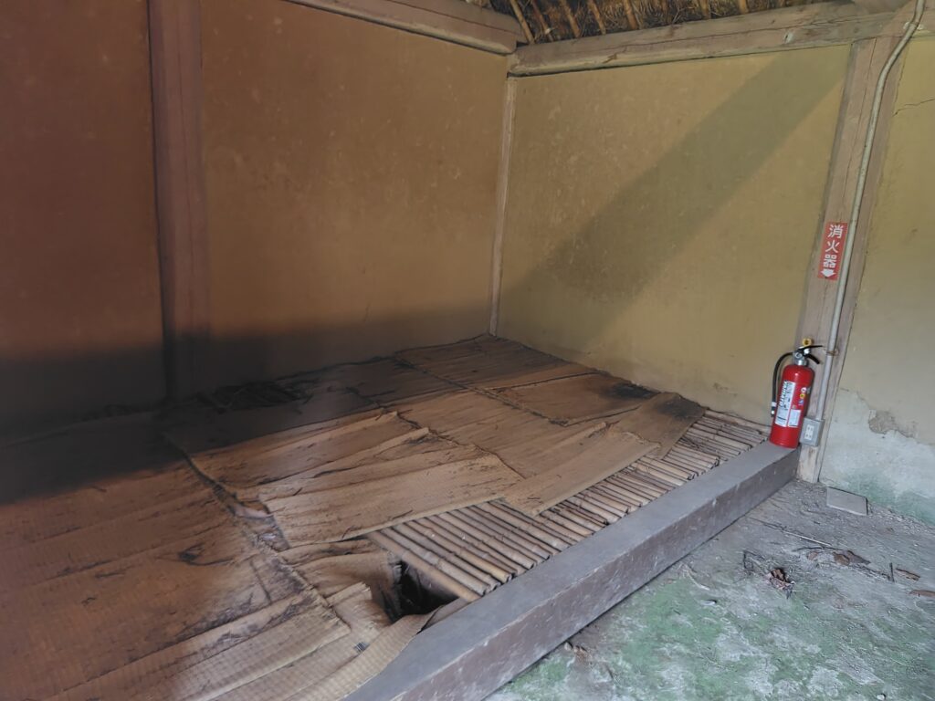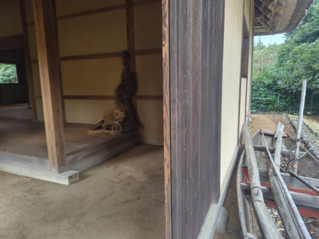 長屋の作業棟 土塗壁 / 茅葺 / 一部竹すのこ敷