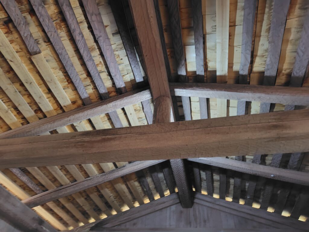 工房 仕上げ作業場 板壁 / 割板葺 / 棟持柱